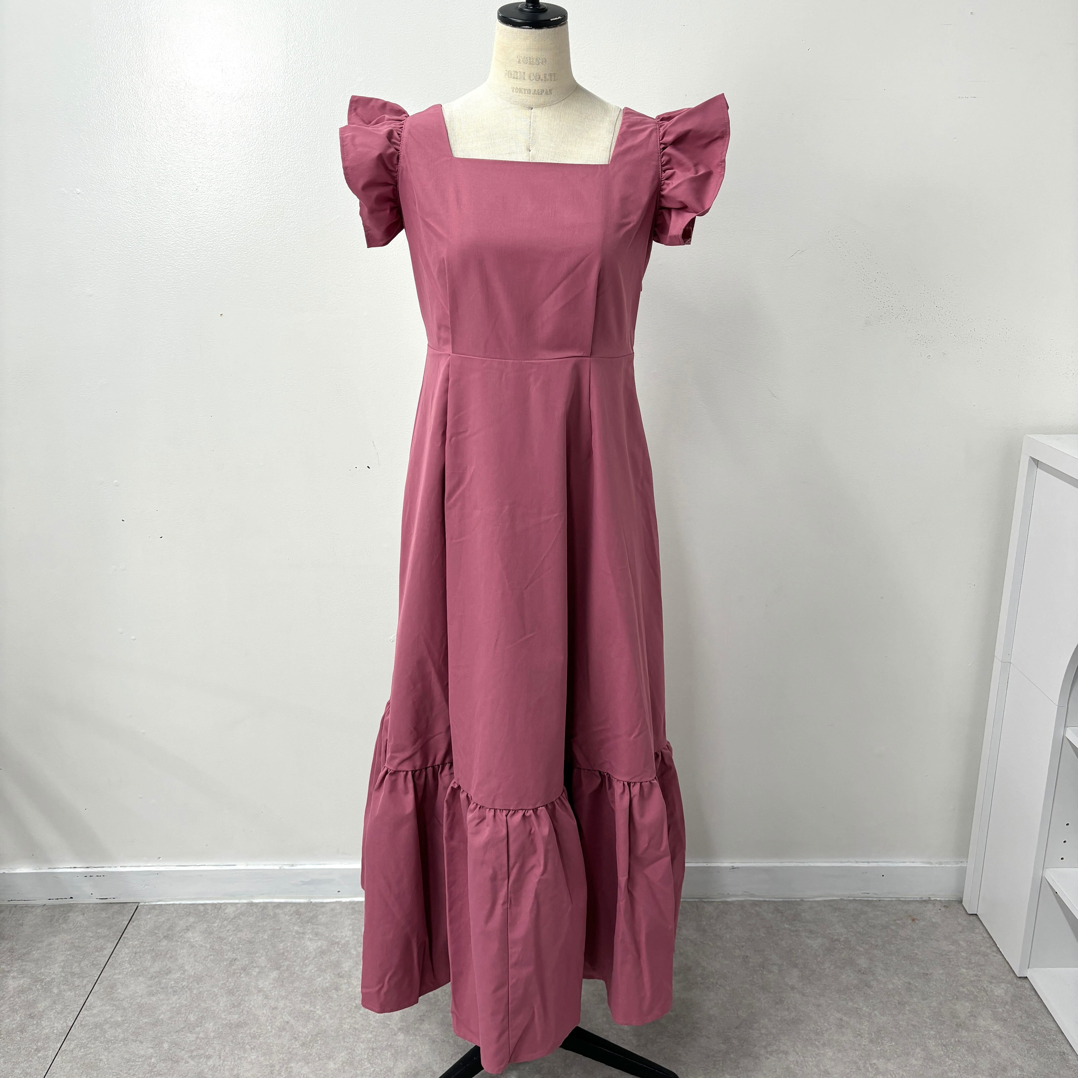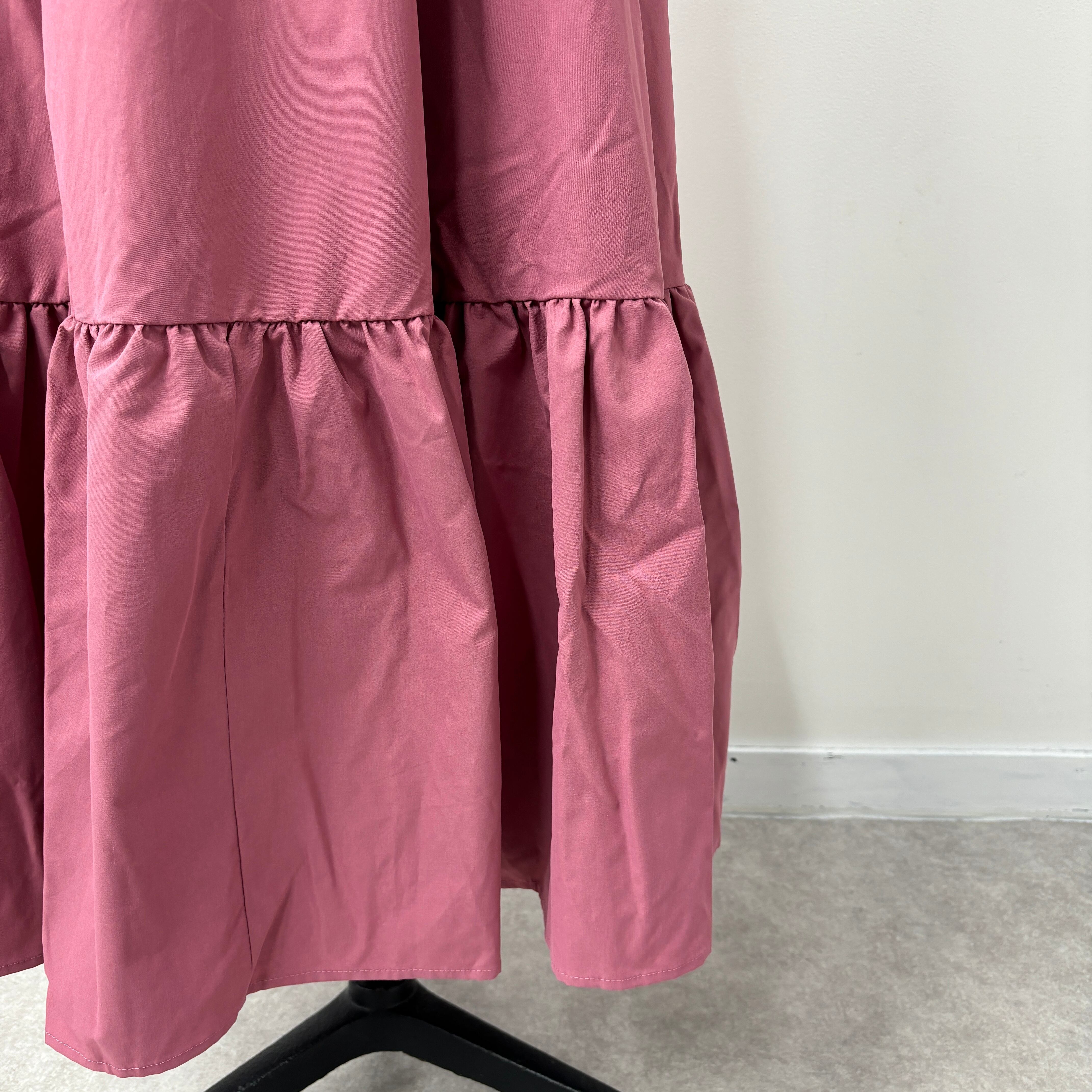 レディース ピンク フリル 可愛い ロング丈ワンピース B1582