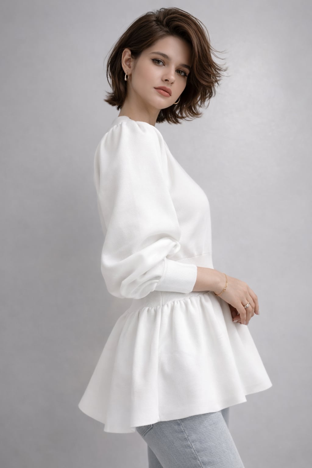 新品 TREFLE+1 トレフルプラスワン ペプラムニット 長袖 ホワイト 白 B1614