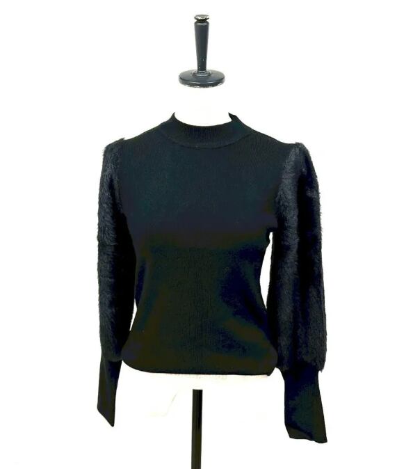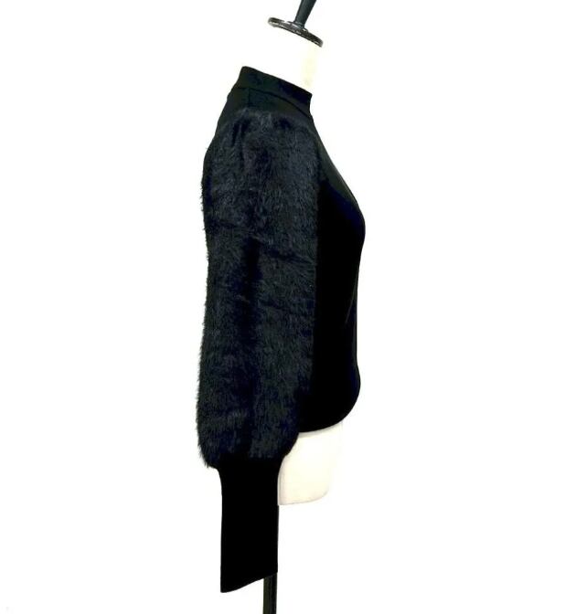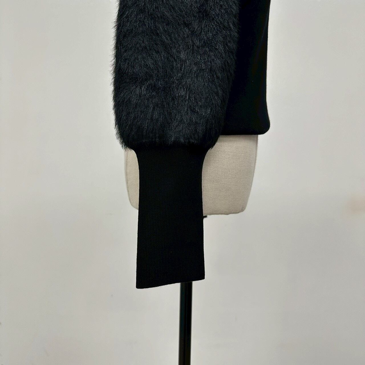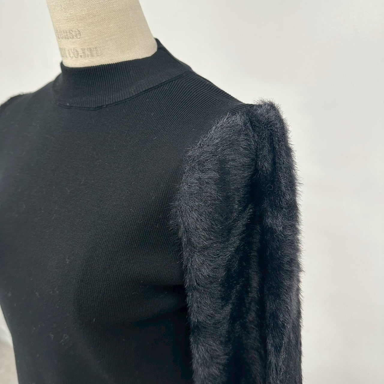 nairo 袖フェイクファー 切り替えリブニット ブラック S