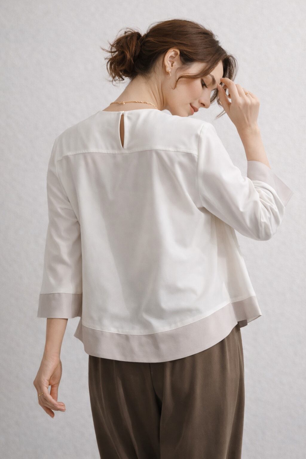 ジョーゼット フロントタック バイカラー ブラウス オフホワイト