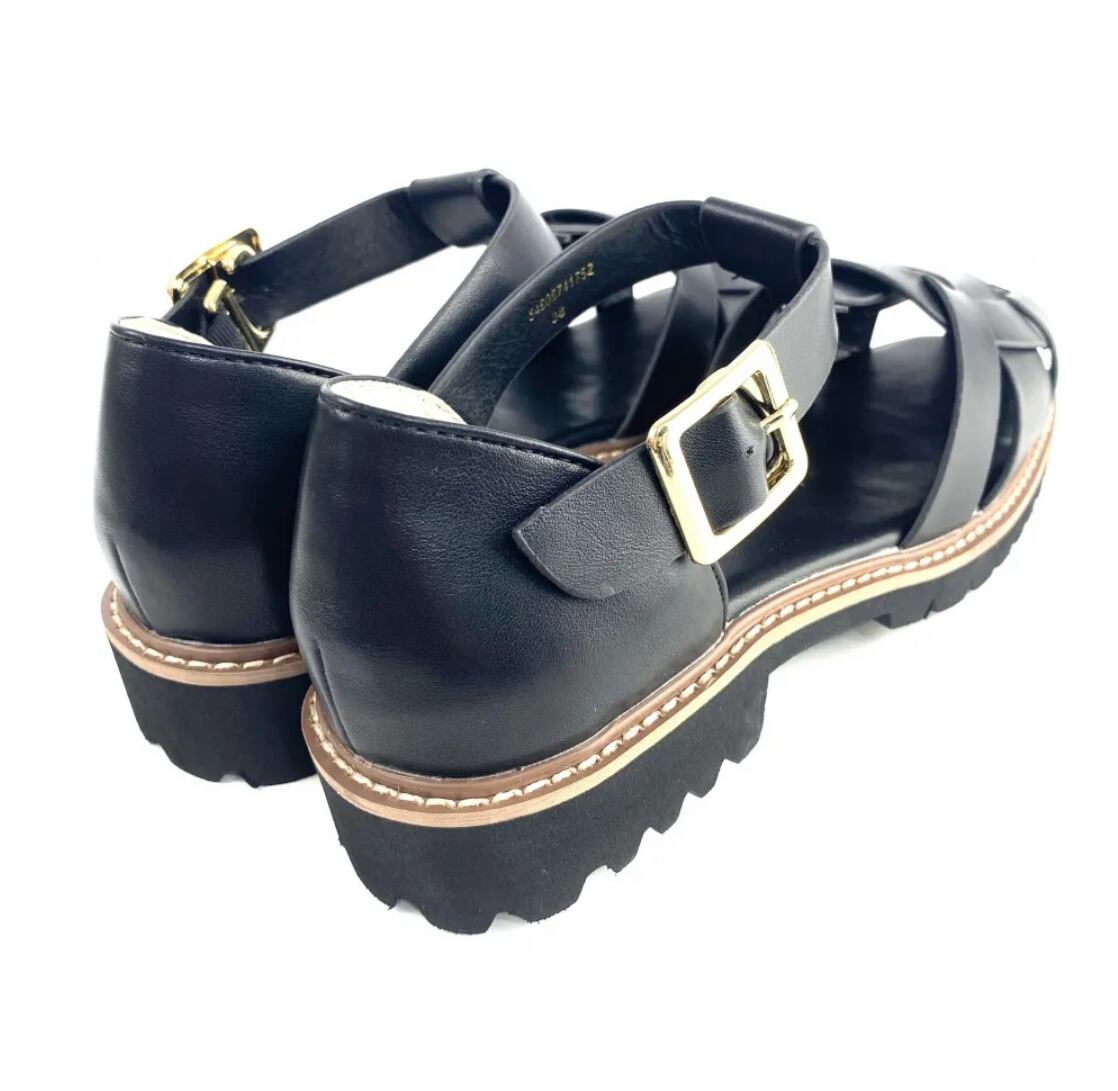 トレンド感あふれるグルカデザインが魅力のレザーライクサンダル。